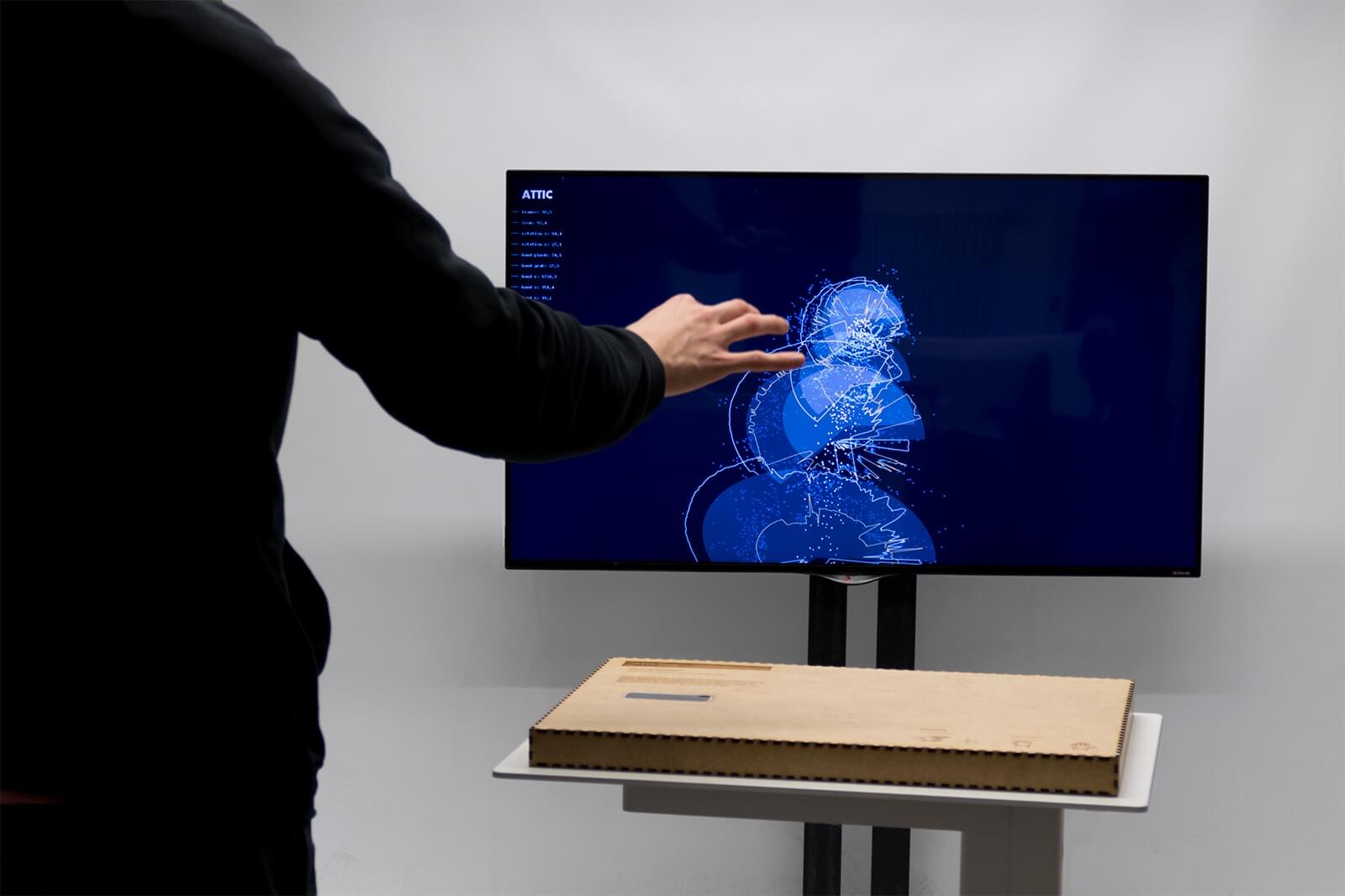 The user can interact with the data by using predetermined hand gestures in mid air, which makes it a more tangible experience.