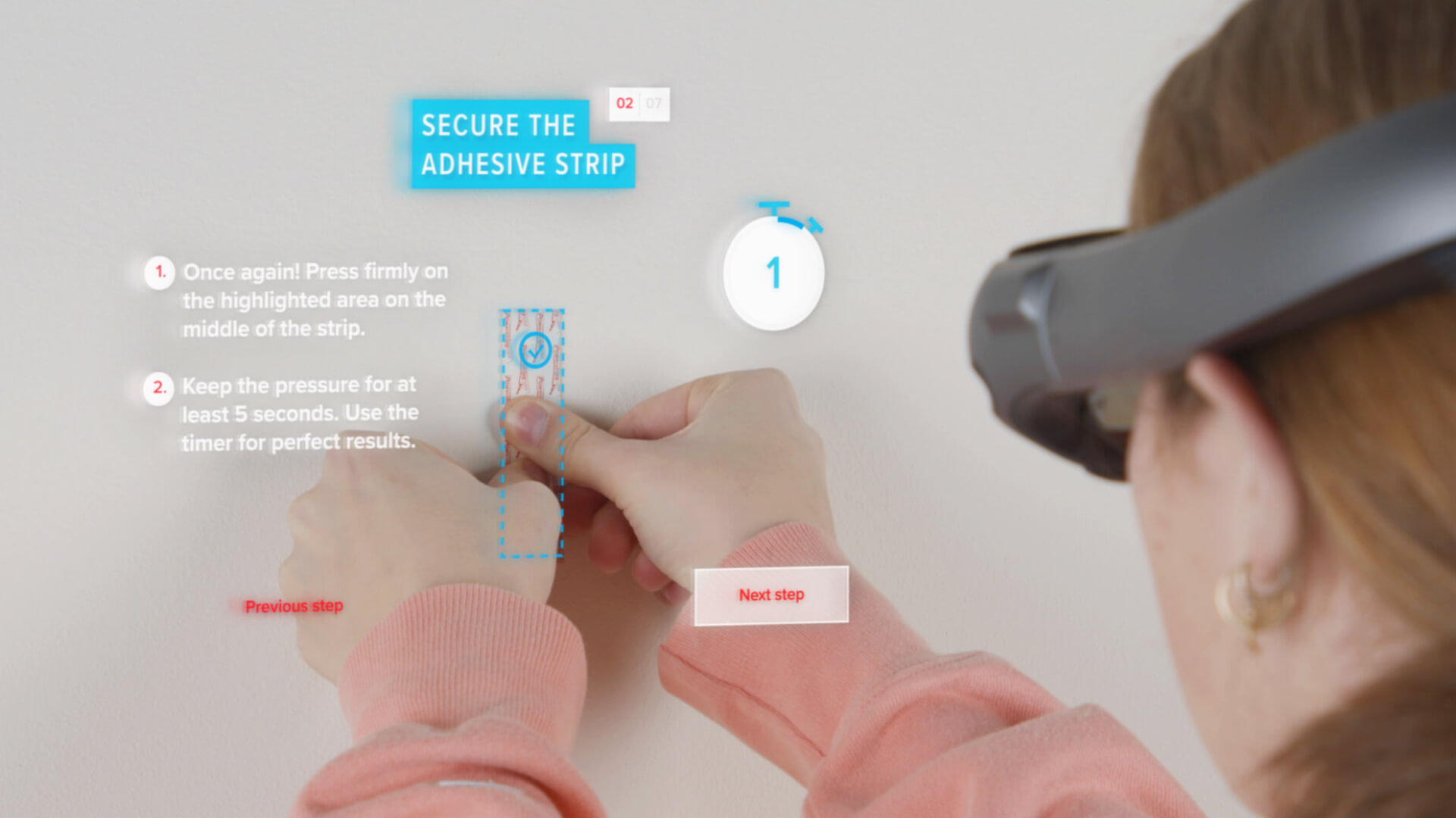 Klebenägel gehören zu den beliebtesten Produkten im Portfolio von tesa. Doch nicht nur die Technik hinter dem Produkt, auch ihre Installation sind eine Wissenschaft für sich – von der richtigen Beschaffenheit des Untergrunds bis zum richtig getimten Anpressen der Klebefläche. Natürlich liegt den Produkten eine Bedienungsanleitung bei. Doch aus Erfahrung wissen wir, dass viele Anwender Anleitungen ignorieren oder es schwierig finden allen Instruktionen auf einem Blatt Papier zu folgen, während sie mit beiden Händen versuchen, Klebenagel und Bilder anzubringen. Mit einem Prototypen für AR-Brillen haben wir einen neuen Service rund um die tesa Klebenägel erschaffen. Mit Anleitungen, die intuitiv, interaktiv und dreidimensional sind. Die resultierende Experience wurde zu einem einzigartigen AR-Case für tesa und bildet den Ausgangspunkt für neue Serviceansätze der Marke.