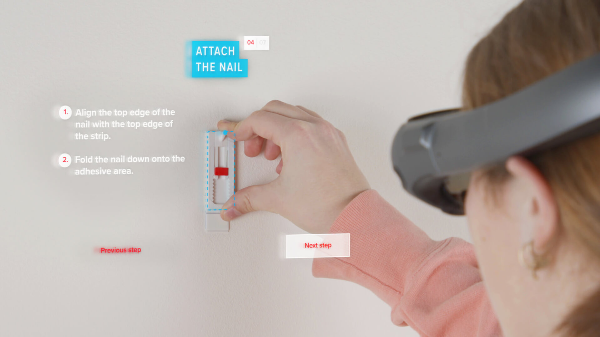 tesa's Adhesive Nails are one of their most popular products. But there's a challenge: The installation of the product, which both holds reliably against walls and can be removed without leaving a trace, is not so trivial. One that not everybody has patience for. Of course, it comes with an instruction manual, but most people find it tricky to follow 2D sketches on a piece of paper while trying to solve a challenge in the space around them with both hands. Using a first of its kind prototype for AR-glasses, a product predicted to boom in the next few years, we digitally reinvented them. With instructions that are simple, interactive, intuitive, and, more importantly: three dimensional. The resulting experience became a unique case for tesa. And the starting point for a more comprehensive service.